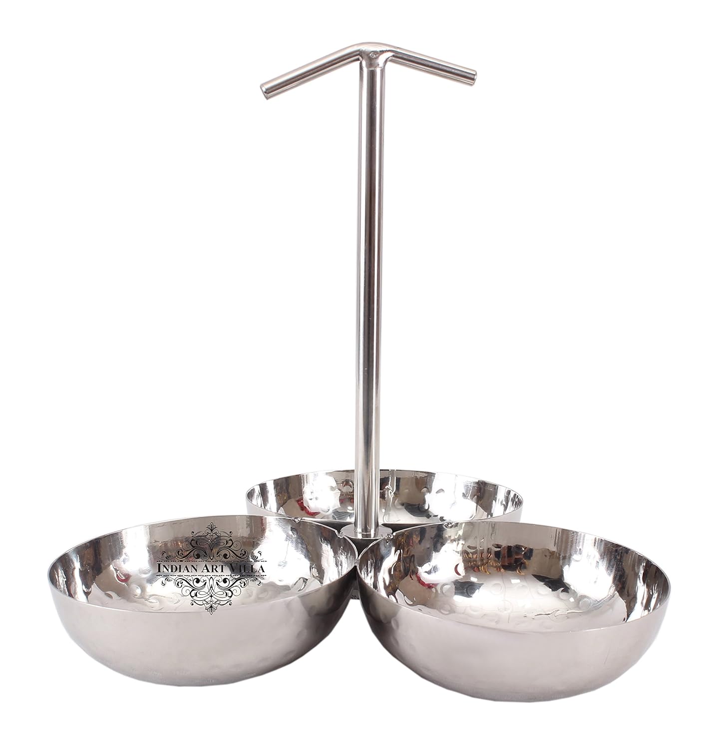 Steel Hammered Pickel Set| 3 Bowl Compartment Condiment Set| Serving Dishes